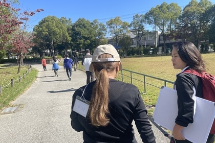 当日は、歩く前に大切な関節と筋肉を動かす準備体操をして、長めの距離を歩くことでしっかりと歩き方を身につけてもらいます。
