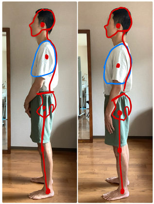 ④骨盤の傾き(beforeは骨盤が後傾している)